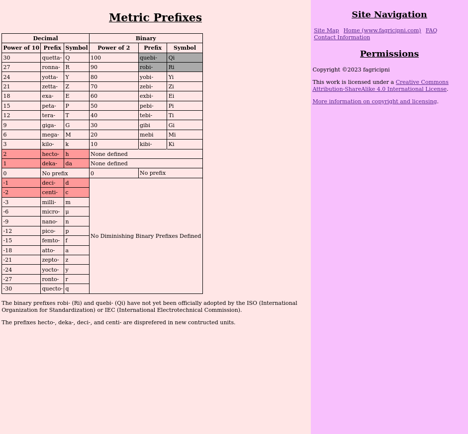 However, I don't use a wide variety of color schemes on my pages; so I took screenshots of a few sample pages to try out the simulator on. There are three pages of note here. First my Metric and Binary Prefixes page: here is are image files of the screenshot of Prefixes without filtering and the screenshot of Prefixes through the protanopia filter. Here, my background color for the unofficial binary prefixes and my background color for the "deprecated" prefixes is very similar to a protanope. This confusability causes me a bit of concern, because while the text at the bottom of the table does give the same information as in the table, it is a bit more difficult for a protanope to take in the table at a glance.
